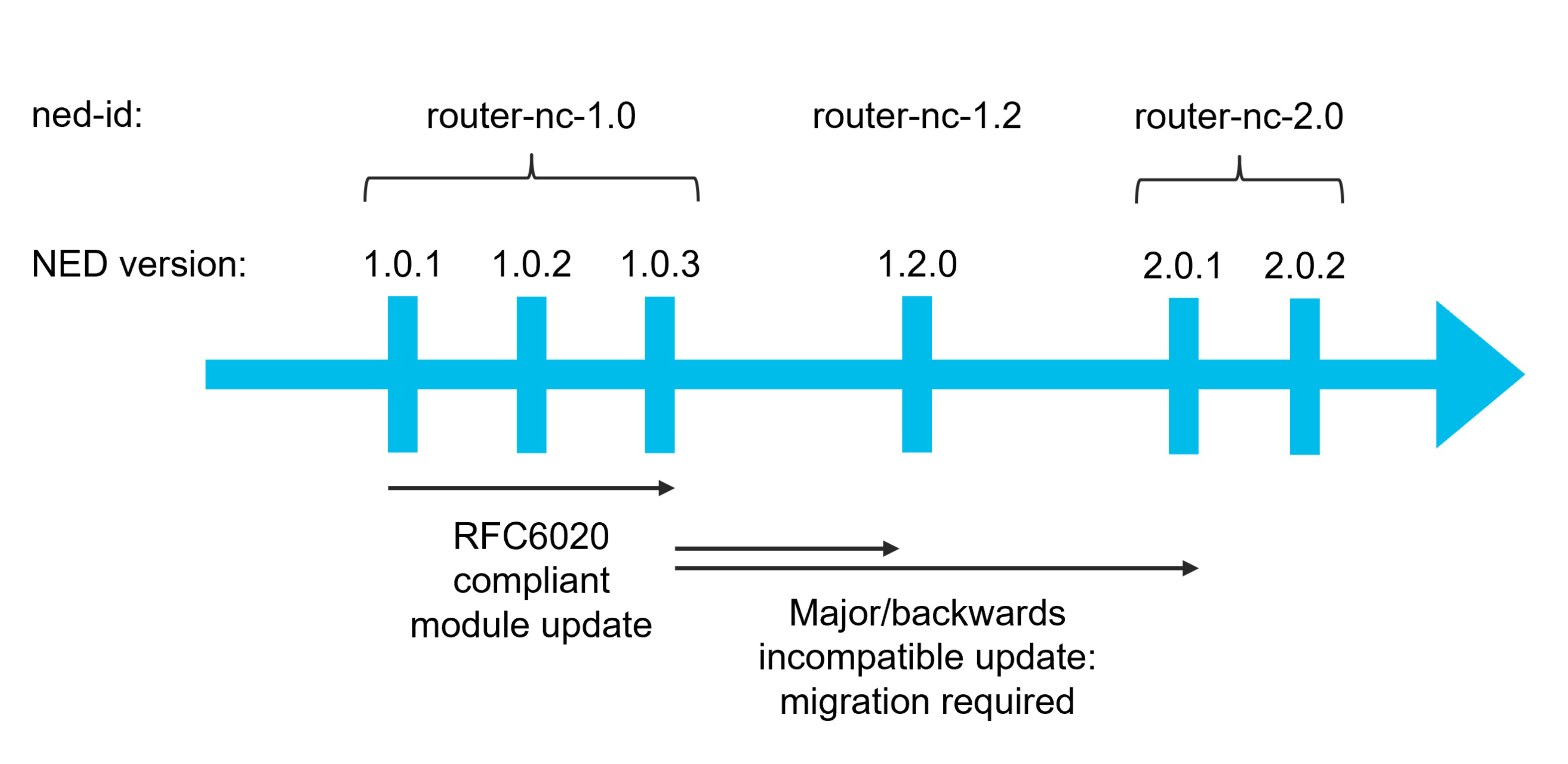 <figure><img src="https://1876216345-files.gitbook.io/~/files/v0/b/gitbook-x-prod.appspot.com/o/spaces%2FwbLDUJab3XTjcyLTPcUK%2Fuploads%2Fgit-blob-605306a9c0b70de965a582e091d82ab0734717a5%2Fsample-ned-versions.png?alt=media" alt="" width="563"><figcaption><p>Sample NED Package Versioning</p></figcaption></figure>