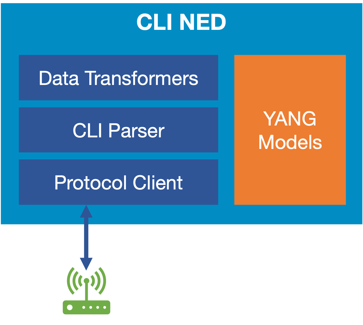 Cisco provides and supports a number of such NEDs. With these Cisco-provided NEDs, a major category are CLI NEDs which communicate with a device through its CLI instead of a dedicated API.